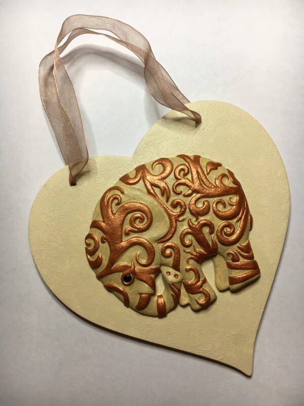 Bronze and Cream Heart Elephant Hanging Decoration – Matt Lacquer Finish