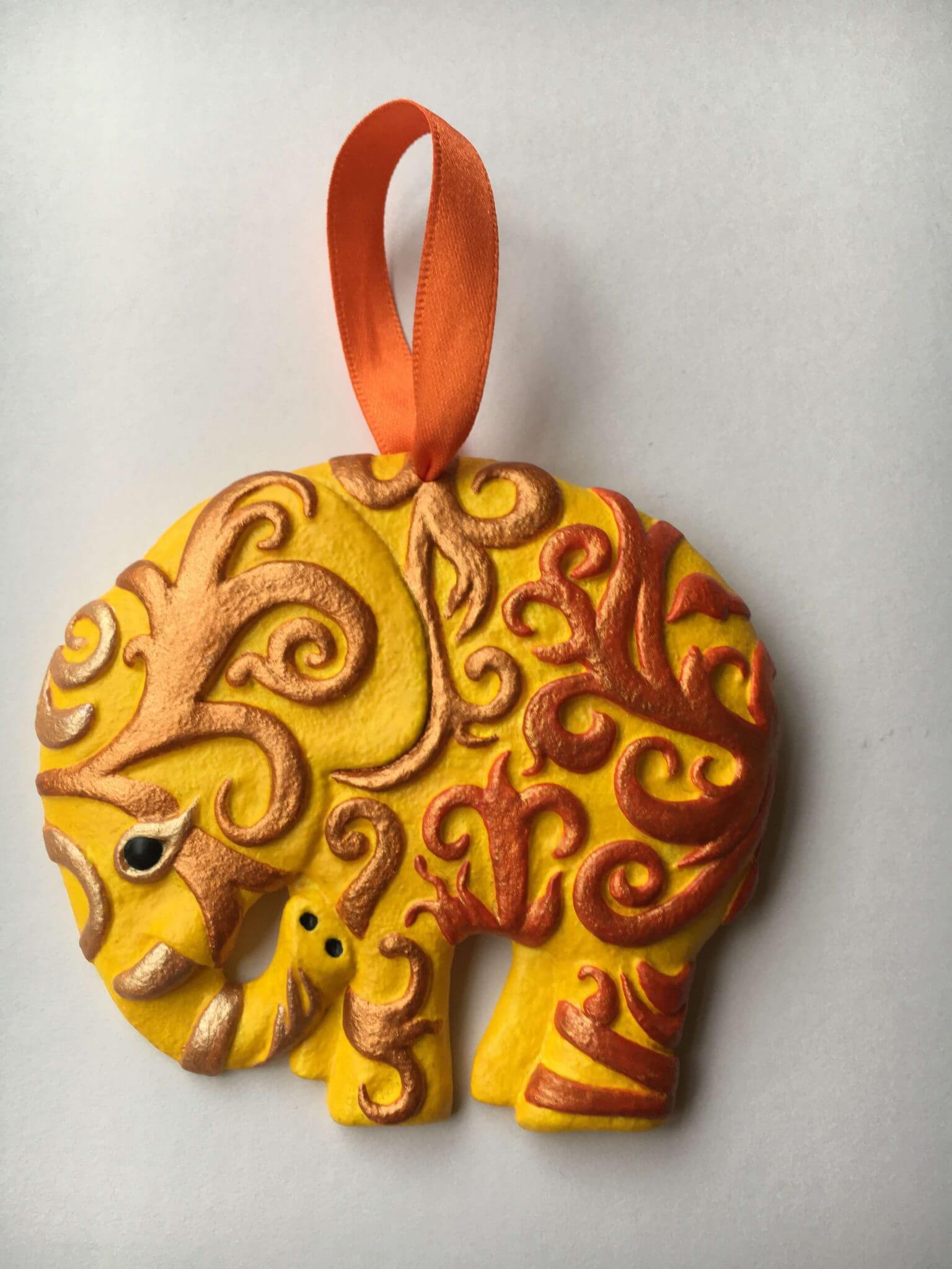 Yellow Elephant Hanging Decoration – Matt Lacquer Finish (March 2018)